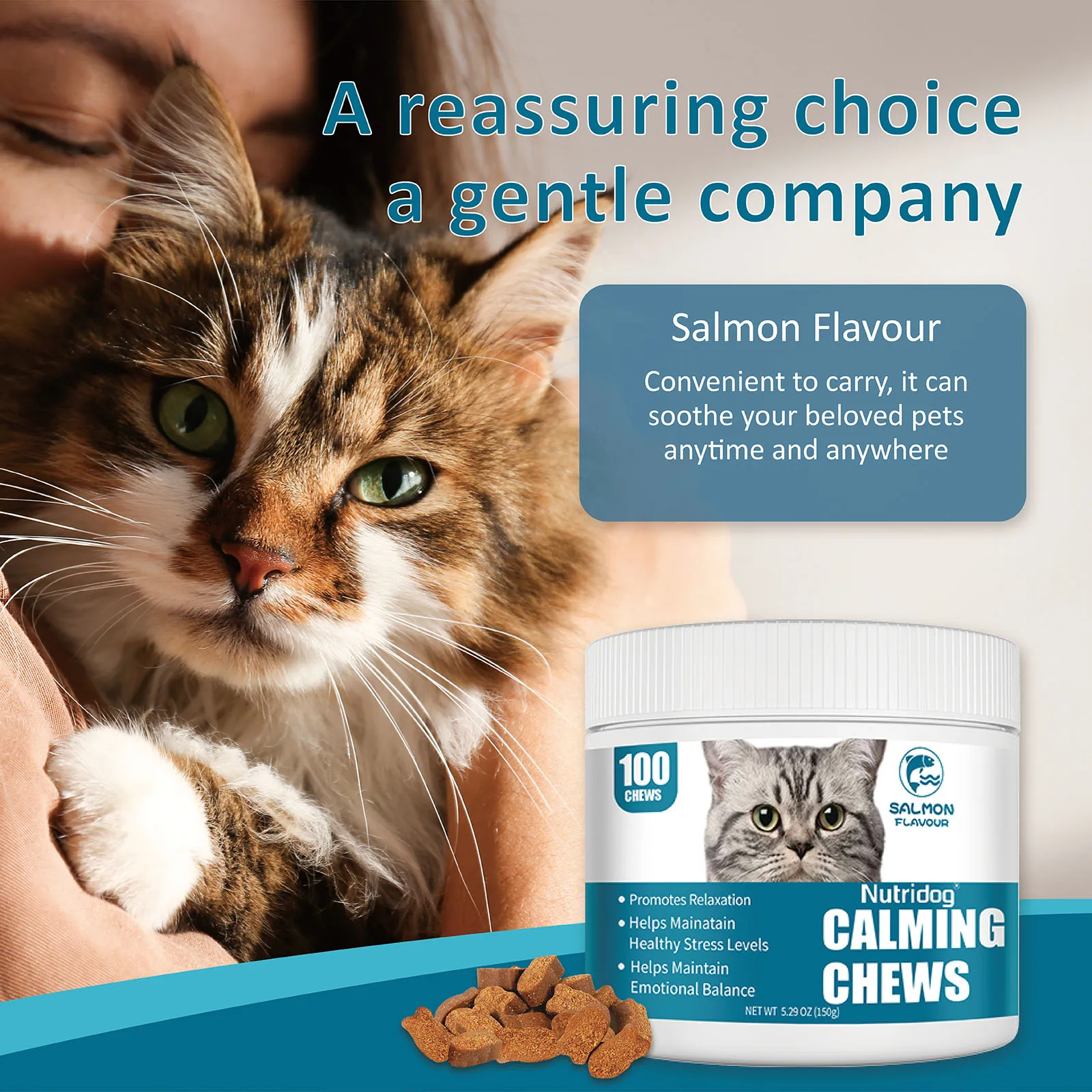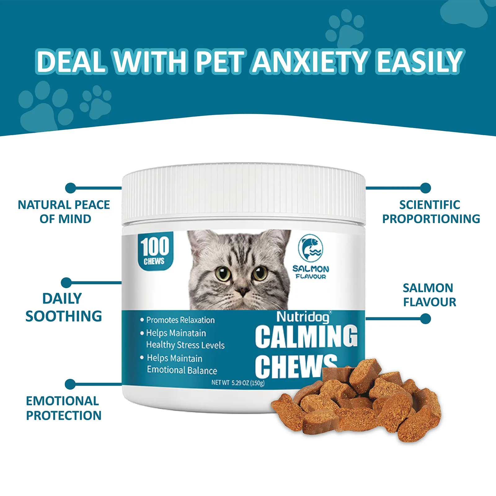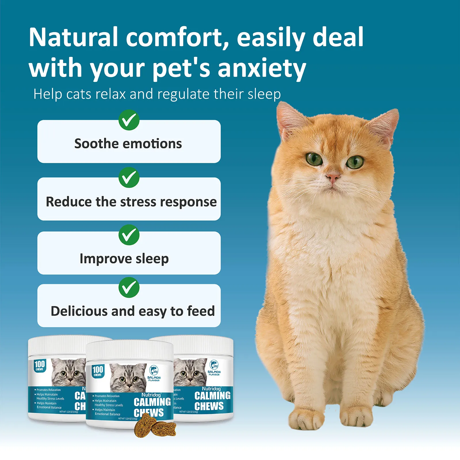 This cat chews can promote cats' relaxation, make cats' moods calmer, help cats maintain a healthy stress level, relieve the effects of stress, better cope with stressful environments, and help cats with bad moods maintain emotional balance.